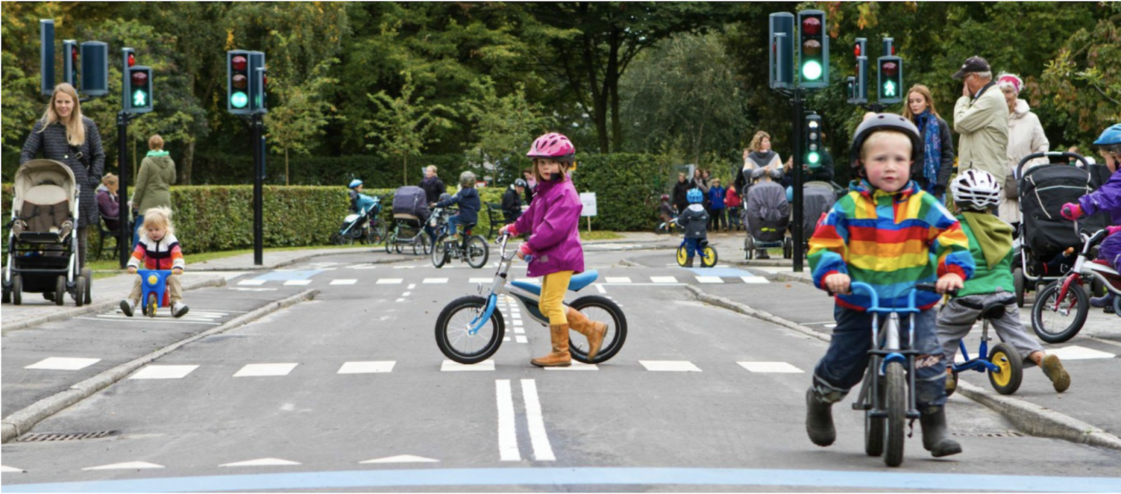 Copenhagen has many staffed playgrounds. Many have different themes like art, sports, or in this case, biking. We visited this park as a group and heard from the program director who had been working there for 36 years. He explained that the park is open to the public and children come there to practice cycling in conditions like ones they will face in the city when they start biking on their own. He insisted on calling the park a playground. He thinks using the term "playground" is important in order to instill the idea that biking is a fun and playful activity and mode of transport. The program has hundreds of free bikes to lend to kids who wish to use the playground they host free learning-to-ride workshops for children of different ages almost every day. Instead of building fake miniature buildings, the playground uses hedges to simulate the feeling of not being able to see around a corner. The manager mentioned that the hedges are the only expensive ongoing maintenance cost of the park. But once built and staffed, the park benefits the public in many ways, especially by instilling a love for bicycling at an early age.The playground is the cutest thing ever and we got to play on it. I took some videos and pictures (see below)